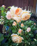 Shrub.  English Rose Collection.  Apricot - yellow, darker center, lighter edges.  Strong, myrrh fragrance.  Medium to large, very full (41+ petals), cluster-flowered, in small clusters, cupped bloom form.  Blooms in flushes throughout the season.  USDA zone 5b through 10b.  Height of 39" to 4' (100 to 120 cm).  Width of 2' to 3' (60 to 90 cm). David C. H. Austin (1926-2018) (1983).