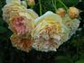 Shrub. (Series: English Rose Collection) Apricot - yellow, salmon-pink shading, golden-yellow reverse. Edges shaded pink. Strong, apple, clove, tea fragrance. Medium, very full (41+ petals), in small clusters, globular bloom form. Blooms in flushes throughout the season. Height: 43" (110cm). David C. H. Austin (1926-2018) (2009).