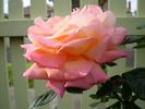 Hybrid Tea. Pink blend. Flowers phlox-pink, base canary-yellow,. Mild fragrance. Very large, full (26-40 petals), borne mostly solitary, cupped bloom form. Blooms in flushes throughout the season. USDA zone 7b and warmer. Height of 4½' to 6' 7" (135 to 200 cm). Stanley C. Johnston (1960).
