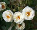 Hybrid Multiflora, Hybrid Musk, Shrub. Light apricot. Moderate fragrance. Small, very full (41+ petals), old-fashioned bloom form. Prolific, blooms in flushes throughout the season. Height of up to 4' 11" (up to 150 cm).