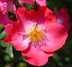Floribunda. Deep pink, white center. Coral to hot pink. Mild to strong fragrance. Medium, single (4-8 petals), cluster-flowered, flat to cupped bloom form. Blooms in flushes throughout the season. USDA zone 4b through 9b. Height: 3' to 5' (90 to 150cm). Width: 5' to 6' (150 to 185cm). Roy E. Shepherd (1957).