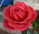 Mini-Flora.  Deep Coral, orange-red or pinkish-red depending on the weather.  Very full, and must be cut early for high center exhibition. Petals have pointed picote edges..  Mild fragrance.  Small to medium, very full (41+ petals), borne mostly solitary, exhibition bloom form.  Continuous (perpetual) bloom throughout the season.  Height of 2' to 4' (60 to 120 cm).  Width of up to 2' (up to 60 cm). Judith Belsham Singer (2009).