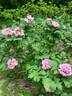 Hybrid rockii, Tree peony.  Lilac-pink and cream, violet-red flares.  Mild, sweet fragrance.  Medium to large, double, Japanese (anemone, imperial) bloom form.  Midseason.