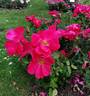 Floribunda. Deep pink to red. Semi-double (9-16 petals) bloom form. Matilde Ferrer (2011).