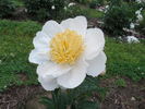 Hybrid lactiflora. White, yellow center. Single bloom form. Height of up to 3' (up to 90 cm). Myron D. Bigger (1965).