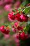 Shrub.  Cherry-red.  Mild fragrance.  Medium, very full (41+ petals), in small clusters, button-eye, old-fashioned bloom form.  Prolific, continuous (perpetual) bloom throughout the season.  Height of up to 39" (up to 100 cm).   Warren Millington (2016).