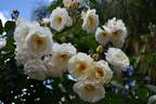 Climber, Shrub.  Cream.  Moderate, musk fragrance.  Medium, double (17-25 petals), in small clusters bloom form.  Prolific, continuous (perpetual) bloom throughout the season.  Height of up to 9' 10" (up to 300 cm).   Warren Millington (2015).