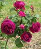 Hybrid Perpetual. Crimson, violet shading. Large, double (17-25 petals) bloom form. Blooms in flushes throughout the season. USDA zone 6b through 9b (default). Height of up to 5' (up to 150 cm). Victor Trouillard (1862).