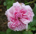Hybrid Perpetual. Pink blend, stripes. Blooms in flushes throughout the season. USDA zone 6b through 9b (default). Harkness & Co. (1897).