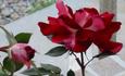 Floribunda. Red blend. Dark claret, carmine or plum red with white eye and reverse. Mild fragrance. Large, in small clusters bloom form. Blooms in flushes throughout the season. USDA zone 6b and warmer. Height of 28" to 4¼' (70 to 130 cm). Width of 2' (60 cm). Samuel Darragh (1932-2019) McGredy IV (1968).