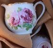 Bourbon, Hybrid Noisette. White, light pink reverse. Medium to large, full (26-40 petals), cupped-to-flat, scalloped bloom form. Blooms in flushes throughout the season. USDA zone 7b and warmer. Joseph Schwartz (1885).