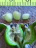Green hip of "Bird Children Pink" cut open, early autumn. South Australia, zone 9b.