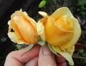 After days of rain and little sun "Stiff Lady Roberts" (right) is a very saturated yellow. 'Lady Hillingdon' (on the left) for colour comparison. My garden, Sydney, 21/5/25 (late autumn).