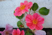 Shrub. Pink, carmine-pink streaks, stripes, flecks. Flowers pink blend, with a paint-spattered look to petals, clematis-like. None / no fragrance. Medium, single (4-8 petals), borne mostly solitary bloom form. Blooms in flushes throughout the season. USDA zone 4b through 9b. Height: 30" to 3' (75 to 90cm). Width: 30" (75cm). Meilland International (2006).