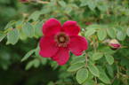 Hybrid Moyesii. Scarlet - geranium-red. None to mild fragrance. Small, single (4-8 petals) bloom form. Once-blooming spring or summer. USDA zone 3b and warmer. Height of 6' to 8' (185 to 245 cm). Width of 5' to 8' (150 to 245 cm). Unknown (1938).