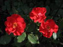 Shrub.  Red.  Shaded deeper red to black in cooler conditions.  None to mild fragrance.  Medium-large, single to semi-double, cluster-flowered, in small clusters bloom form.  Prolific, blooms in flushes throughout the season.  USDA zone 3b and warmer.  Height of 3' to 5' (90 to 150 cm).  Width of 3' to 5' (90 to 150 cm). Robert Neil Rippetoe (2006).
