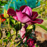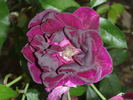 Floribunda. Deep purple with lighter reverse, dark burgundy red stamens and anthers. Full (26-40 petals), cluster-flowered, in small clusters, cupped-to-flat bloom form. Blooms in flushes throughout the season. USDA zone 6b through 9b (default). Height: 30" to 35" (75 to 90cm). Width: 31" to 39" (80 to 100cm). Edgar Norman Swane (1998).