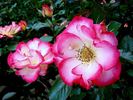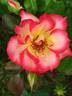 Floribunda. Red and white, red edges, lemon-yellow stamens. Strong, fruity fragrance. Medium to large, semi-double (9-16 petals), cluster-flowered, in small clusters bloom form. Prolific, blooms in flushes throughout the season. USDA zone 6b through 10b. Height of 3' to 5' (90 to 150 cm). Width of 3' to 4' (90 to 120 cm). Tom Carruth (1999).