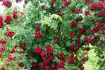 Floribunda. Crimson. Mild, tea fragrance. Medium, very double, in large clusters, rosette bloom form. Blooms in flushes throughout the season. USDA zone 5b and warmer. Height of 2' to 3' (60 to 90 cm). Gerrit De Ruiter (1962).