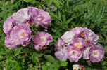 Floribunda. Lilac, lighter reverse, ages to blue . A true old purple, with a blush to white centre,. None to mild, opinions vary fragrance. Medium to large, semi-double to double, in large clusters, cupped bloom form. Blooms in flushes throughout the season. USDA zone 6b through 9b (default). Height: 35" to 6'7" (90 to 200cm). Width: 47" (120cm). Peter J. James (2001).