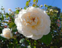 Large-Flowered Climber. Cream to white. Moderate fragrance. Large, very full (41+ petals), flat, old-fashioned, rosette bloom form. Blooms in flushes throughout the season. USDA zone 6b through 9b (default). Height of 8' to 13' (245 to 395 cm). Width of up to 5' (up to 150 cm). Unknown (1940).