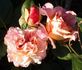 Floribunda, Hybrid Tea. Orange-pink. [Apricot - pink.]. Flowers mango orange suffusing to pink. Mild, fruity, tea fragrance. Large, very double, borne mostly solitary, in small clusters, high-centered to cupped, open, ruffled, scalloped bloom form. Blooms in flushes throughout the season. Height: 39" to 4¼' (100 to 130cm). Width: up to 30" (up to 75cm). Harkness (2006), Harkness (2006), Harkness & Co. (2006).