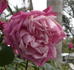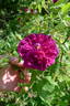 Hybrid Setigera. Mauve or purple blend, red center. Moderate, old rose, opinions vary fragrance. Medium to large, full (26-40 petals), flat, quartered bloom form. Once-blooming spring or summer. USDA zone 5b through 9b. Height: 8' to 12' (245 to 365cm). Rudolf Geschwind (1829-1910) (1884).