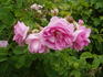 China / Bengale. Pink. Moderate fragrance. Medium, semi-double to double, in small clusters, cupped-to-flat bloom form. Blooms in flushes throughout the season. USDA zone 6a through 10b. Height of 3' to 10' (90 to 305 cm). Width of 30" to 6½' (75 to 200 cm). John Parsons (1793).