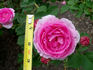Hybrid Tea. Light pink, darker edges, pink reverse. Orchid pink. Strong, damask, old rose fragrance. Large, very full (41+ petals), borne mostly solitary, high-centered to cupped bloom form. Blooms in flushes throughout the season. USDA zone 7b and warmer. Height: 4½' to 5' (140 to 150cm). Width: 26" to 33" (65 to 85cm). Tom Carruth (2001).