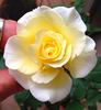 Hybrid Tea / Large-Flowered. Light yellow. Mild fragrance. Large, double (17-25 petals) bloom form. Blooms in flushes throughout the season. USDA zone 7b and warmer. Height of 42" to 4' (105 to 120 cm). Width of 30" to 31" (75 to 80 cm). Dickson (1926-2012) (1981), Dickson (1956-....) (1981).