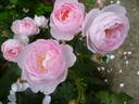 Shrub. English Rose Collection. Light pink. Moderate, tea rose fragrance. Medium, very full (41+ petals), in small clusters, cupped-to-flat, old-fashioned, quartered, rosette, ruffled bloom form. Blooms in flushes throughout the season. USDA zone 5b through 10b. Height of up to 41" (up to 105 cm). Width of up to 35" (up to 90 cm). David C. H. Austin (1926-2018) (1994).