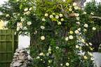 Climber, Large-Flowered Climber, Shrub. Yellow, orange shading. Strong fragrance. Large, very full (41+ petals), old-fashioned, quartered, rosette bloom form. Once-blooming spring or summer. USDA zone 4b through 9b. Height of 6' to 20' (185 to 610 cm). Width of 6' to 8' (185 to 245 cm). Reimer Kordes (1922-1997) (1956).