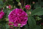 Gallica / Provins.  Crimson or dark purple.  Strong fragrance.  Large, full (26-40 petals) bloom form.  Once-blooming spring or summer.  USDA zone 4b through 8b.