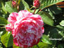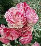Floribunda. Red, white stripes. Flowers striped burgandy and white, or cream, or red, opening quickly. Mild to strong, damask, rose, spice, opinions vary fragrance. Large, double (17-25 petals), cluster-flowered, in small clusters bloom form. Blooms in flushes throughout the season. USDA zone 6b through 9b (default). Height: 35" to 47" (90 to 120cm). Width: 31" to 43" (80 to 110cm). Tom Carruth (1996).