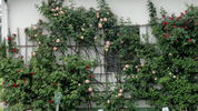 Climber, Hybrid Multiflora, Polyantha, Cl., Rambler. Violet, white streaks, stripes, flecks, white center, yellow stamens. Moderate, green apple, lily of the valley fragrance. Small to medium, semi-double (9-16 petals), cluster-flowered, in large clusters, cupped-to-flat bloom form. Once-blooming spring or summer. USDA zone 4b and warmer. Height of 10' to 20' (305 to 610 cm). Width of up to 12' (up to 365 cm). J. C. Schmidt / Blumenschmidt (1909).