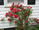 Climber, Hybrid Wichurana, Large-Flowered Climber. Crimson, light yellow stamens. Mild fragrance. Medium, semi-double (9-16 petals), in small clusters bloom form. Once-blooming spring or summer. USDA zone 6b and warmer. Height of 10' to 12' (305 to 365 cm). Width of 8' (245 cm). Captain George C. Thomas (1914).
