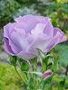 Floribunda. Lilac, lighter reverse, ages to blue . A true old purple, with a blush to white centre,. None to mild, opinions vary fragrance. Medium to large, semi-double to double, in large clusters, cupped bloom form. Blooms in flushes throughout the season. USDA zone 6b through 9b (default). Height: 35" to 6'7" (90 to 200cm). Width: 47" (120cm). Peter J. James (2001).
