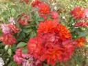 Floribunda. Crimson. Mild, tea fragrance. Medium, very double, in large clusters, rosette bloom form. Blooms in flushes throughout the season. USDA zone 5b and warmer. Height of 2' to 3' (60 to 90 cm). Gerrit De Ruiter (1962).