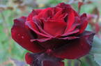 Hybrid Tea. Dark red, darker veining. Moderate fragrance. Large, full (26-40 petals), borne mostly solitary, high-centered bloom form. Blooms in flushes throughout the season. USDA zone 6b and warmer. Height of 3' to 5' 7" (90 to 170 cm). Width of 2' (60 cm). Hans Jürgen Evers (1940-2007) (1988).
