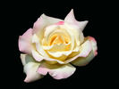 Hybrid Tea. Cream, pink edges. Flowers pale yellow to white, often tinged with light pink, Nasturtium fragrance. Mild fragrance. Very large, full (26-40 petals), high-centered bloom form. Blooms in flushes throughout the season. USDA zone 7b and warmer. Height of 3' to 6' 7" (90 to 200 cm). Width of 2' (60 cm). Herbert C. Swim (1958).