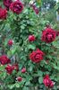 Climber, Hybrid Tea, Cl.. Dark red. Strong fragrance. Very large, very double bloom form. Blooms in flushes throughout the season. USDA zone 6b and warmer. Height of 10' to 12' (305 to 365 cm). Millar Bros. (1941), Naungayan (1946), Richardson (1944).