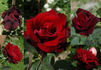 Floribunda. Crimson. Mild, tea fragrance. Medium, very double, in large clusters, rosette bloom form. Blooms in flushes throughout the season. USDA zone 5b and warmer. Height of 2' to 3' (60 to 90 cm). Gerrit De Ruiter (1962).