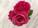 Grandiflora, Hybrid Tea. Buck Roses Collection. Deep pink. Flowers Tyrian red to Tyrian rose. Strong fragrance. Large, full (26-40 petals), cupped bloom form. Blooms in flushes throughout the season. USDA zone 4b through 9b. Height of 4' (120 cm). Dr. Griffith J. Buck (1975).