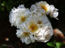 Hybrid Musk, Shrub. White, pink undertones. Moderate fragrance. Small to medium, semi-double (9-16 petals), in large clusters, rosette bloom form. Blooms in flushes throughout the season. USDA zone 6b through 10b. Height of 3' to 10' (90 to 305 cm). Width of 4' to 5' (120 to 150 cm). Rev. Joseph Hardwick Pemberton (1919).