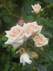 Floribunda. (Series: Parfuma® Collection) Blush, cream shading. Strong, apricot or peach, citrus, fruity fragrance. Medium, very full (41+ petals), cupped, high-centered bloom form. Blooms in flushes throughout the season. Height: 31" to 47" (80 to 120cm). Width: 20" to 32" (50 to 80cm). Tim Hermann Kordes (1998).