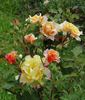 Floribunda, Grandiflora. Golden-yellow - yellow, pink edges, pink shading. Strong, fruity, spice fragrance. Large, full (26-40 petals), cluster-flowered, in large clusters, cupped bloom form. Prolific, blooms in flushes throughout the season. USDA zone 5b and warmer. Height: 5¾' to 6'7" (175 to 200cm). Width: 20" to 26" (50 to 65cm). Tom Carruth (2005).