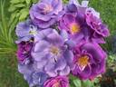 Floribunda. Lilac, lighter reverse, ages to blue . A true old purple, with a blush to white centre,. None to mild, opinions vary fragrance. Medium to large, semi-double to double, in large clusters, cupped bloom form. Blooms in flushes throughout the season. USDA zone 6b through 9b (default). Height: 35" to 6'7" (90 to 200cm). Width: 47" (120cm). Peter J. James (2001).
