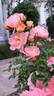 China / Bengale. Pink. Moderate fragrance. Medium, semi-double to double, in small clusters, cupped-to-flat bloom form. Blooms in flushes throughout the season. USDA zone 6a through 10b. Height of 3' to 10' (90 to 305 cm). Width of 30" to 6½' (75 to 200 cm). John Parsons (1793).