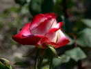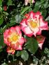 Floribunda. Red and white, red edges, lemon-yellow stamens. Strong, fruity fragrance. Medium to large, semi-double (9-16 petals), cluster-flowered, in small clusters bloom form. Prolific, blooms in flushes throughout the season. USDA zone 6b through 10b. Height of 3' to 5' (90 to 150 cm). Width of 3' to 4' (90 to 120 cm). Tom Carruth (1999).