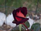 Hybrid Tea. Dark red, darker veining. Moderate fragrance. Large, full (26-40 petals), borne mostly solitary, high-centered bloom form. Blooms in flushes throughout the season. USDA zone 6b and warmer. Height of 3' to 5' 7" (90 to 170 cm). Width of 2' (60 cm). Hans Jürgen Evers (1940-2007) (1988).